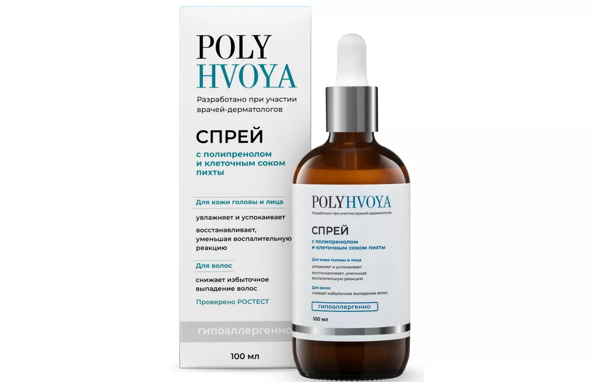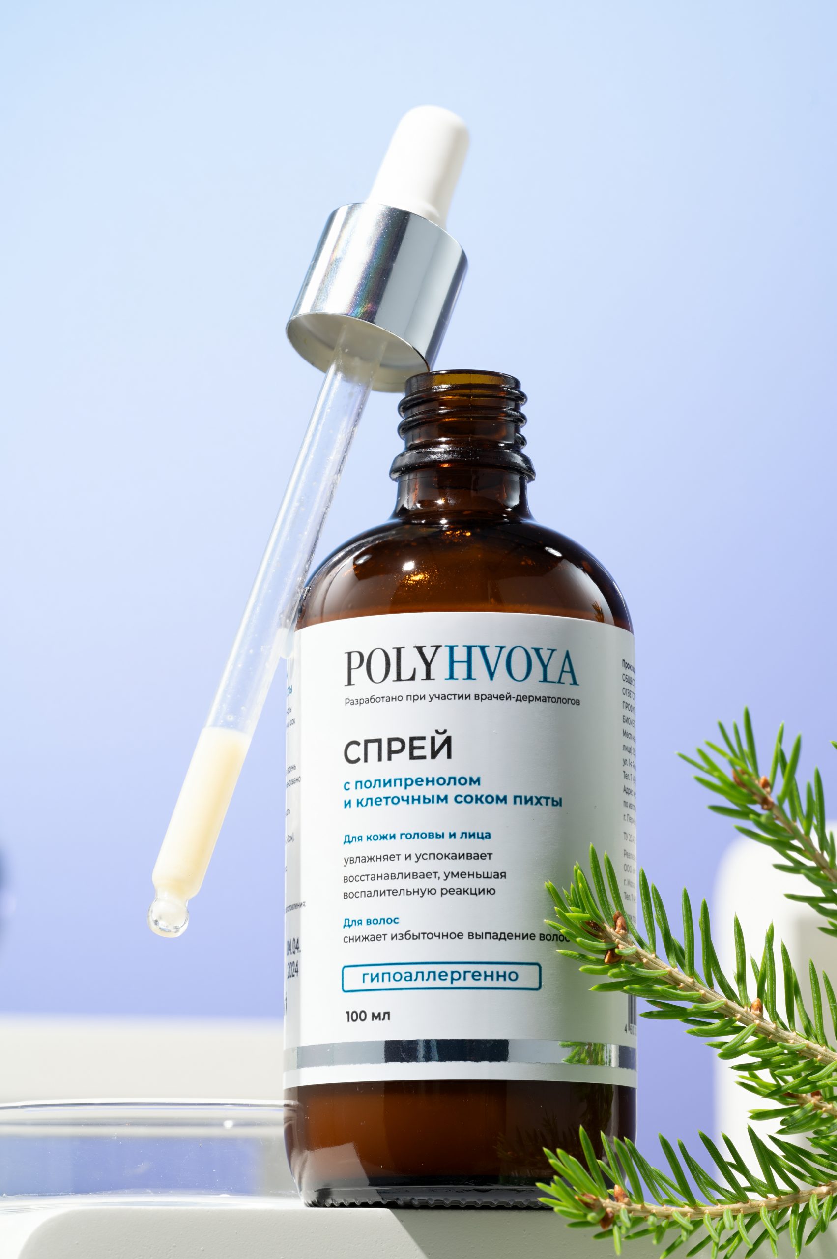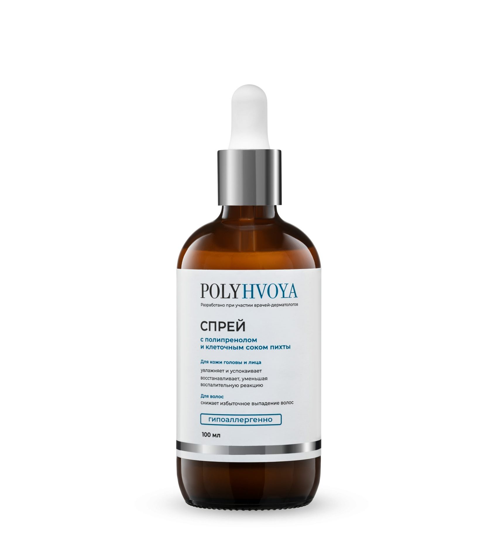 - Спрей Полихвоя не содержит липидных (жировых) компонентов, поэтому отлично подходит для жирной чувствительной кожи, которая нуждается в лифтинге и легком увлажнении, но на любые кремы реагирует «черными точками» и появлением прыщей. Полихвоя подсушивает воспалительные элементы, а коже придет свежий здоровый цвет и легкое увлажнение;